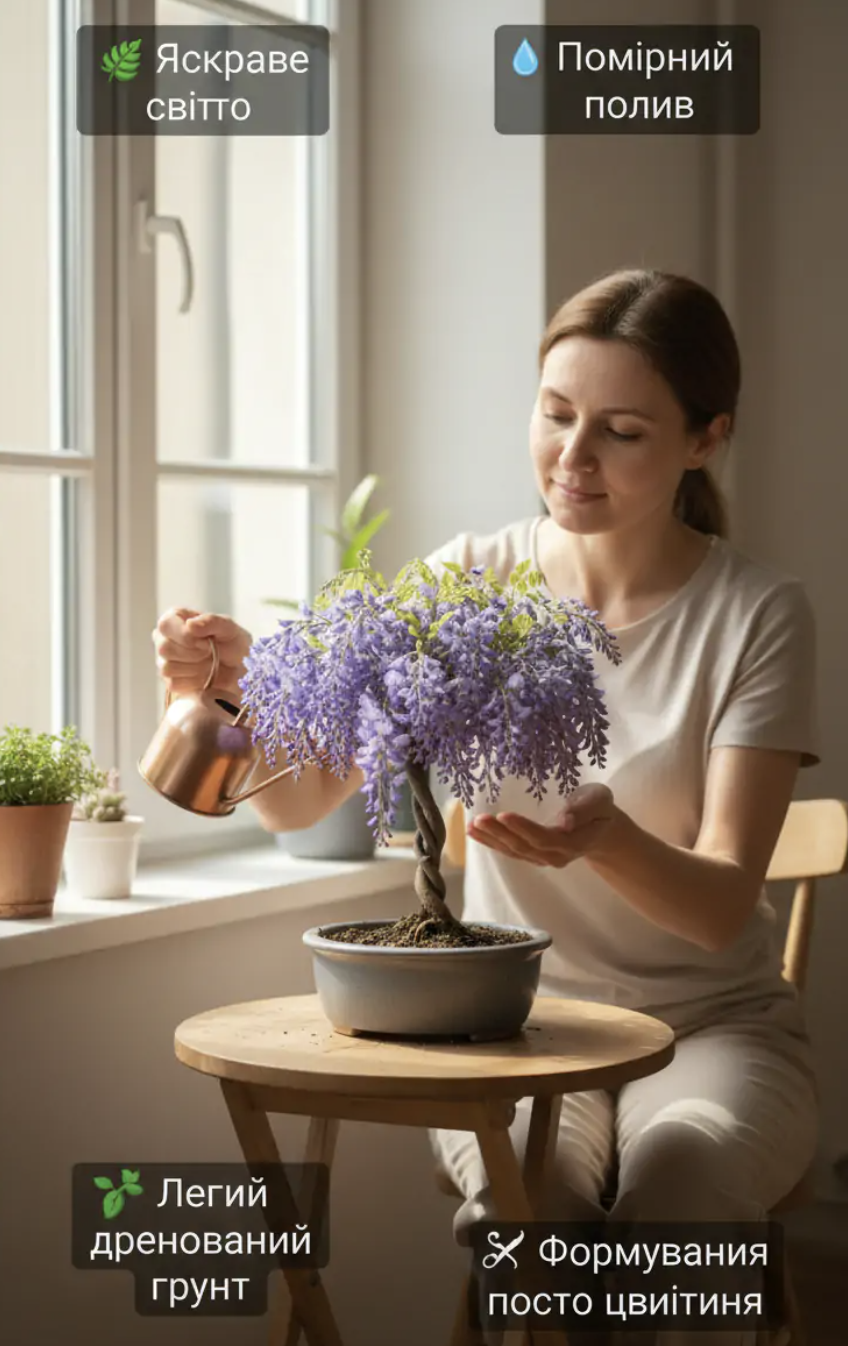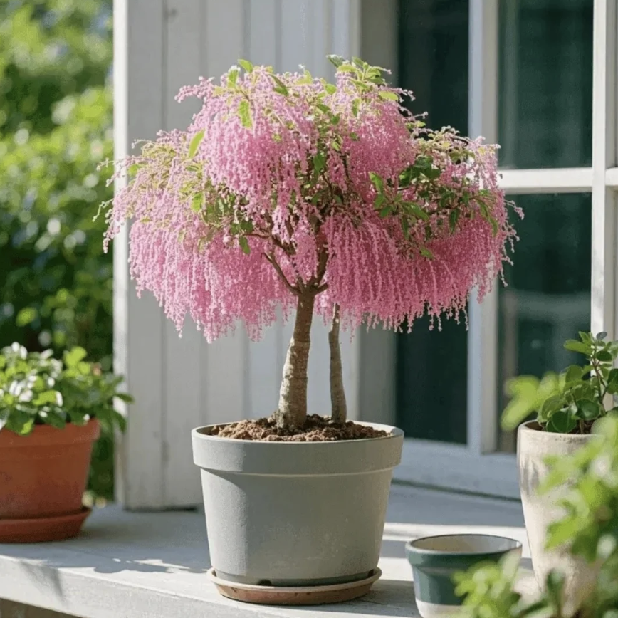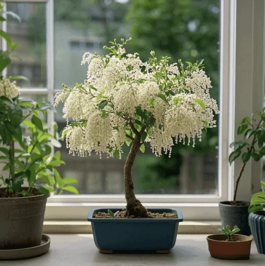Під час цвітіння дерево вкривається ніжними квітами, що звисають вниз, немов квітковий водоспад. Його можна вирощувати як у ґрунті, так і в горщику на балконі чи вдома — воно легко створює вау-ефект.